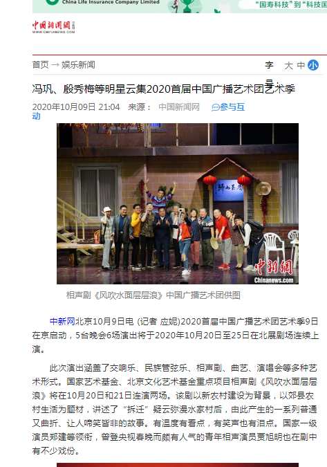 10月2 0日一 21日 相聲劇《風吹水面層層浪》