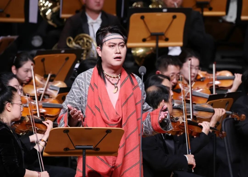 第二篇章《山河?烽火》重現了那段浴血抗爭的烽火歲月。交響樂《紅旗頌》率先奏響莊嚴樂章,抗日歌曲聯唱環節,臺灣少數民族音樂人以少數民族語言演唱的《賽德克巴萊》,以及《長城謠》《南泥灣》《游擊隊之歌》《團結就是力量》等經典歌曲豪邁唱響。歌曲《九兒》用婉轉深情的唱腔訴說家國大義,鋼琴協奏曲《保衛黃河》奔騰的浪濤里翻涌著中華民族的不屈脊梁。霧社起義等歷史場景隨音符徐徐鋪陳,展現了臺灣同胞不屈不撓、英勇抗日的民族氣節,用樂章凝聚兩岸同胞共守家國記憶、同赴復興征程的深厚情感。