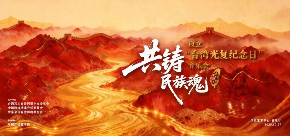 以音樂回溯歷史長河,用旋律聯結血脈深情。“共鑄民族魂——設立臺灣光復紀念日”音樂會,10月27日在國家圖書館藝術中心·音樂廳深情奏響。本場音樂會由臺灣民主自治同盟中央委員會、全國政協港澳臺僑委員會、中華全國臺灣同胞聯誼會主辦,中國廣播藝術團精心策劃,中國廣播電影交響樂團、中國廣播電聲樂團、中國廣播合唱團、北京音協童聲合唱團聯袂奉獻精彩演出。